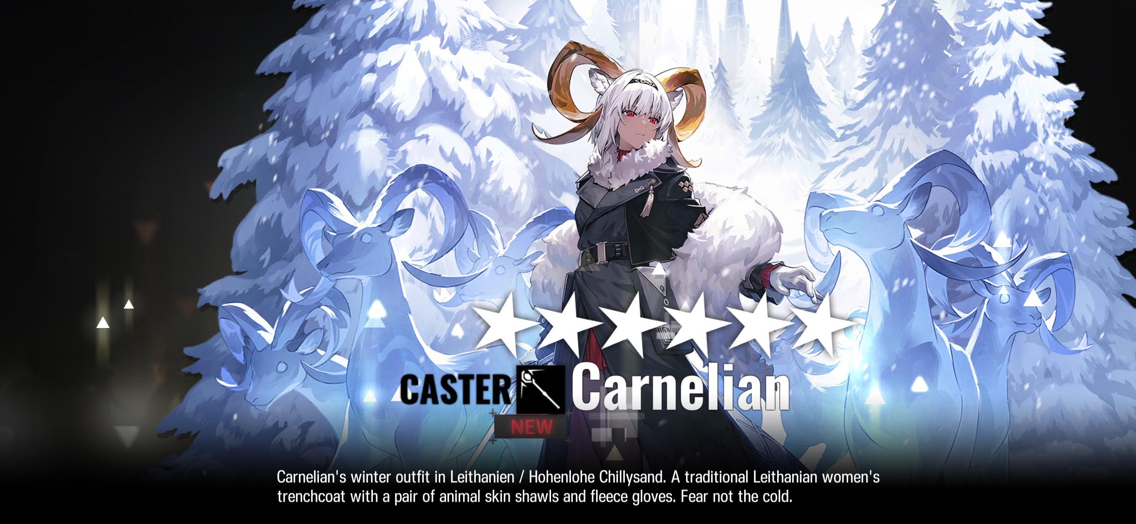 “Hailing from a fiery country, a heart of boiling blood mixed with the frigid cold. When wind and snow meet, all must seek safe haven.”