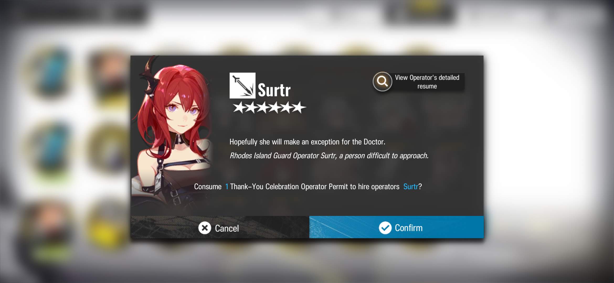 Although I could have chosen another option, such as Passenger, because Surtr will be available in store around November, however, there will be so much content between now and then that having Surtr and raising her earlier has many advantages.