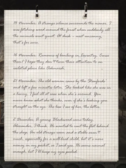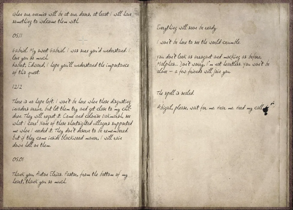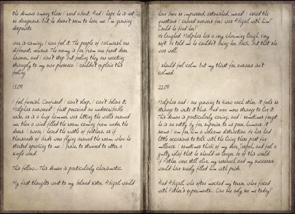 Codex: My dearest son letter. Oakmarsh village now accessible.