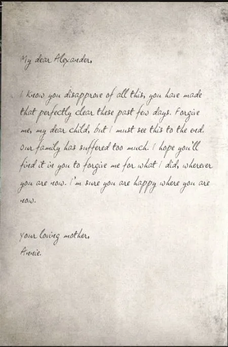 Codex: Note to Alexander from Annie.