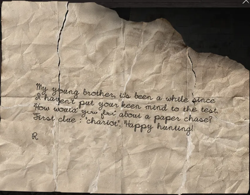 - Go to the Office room with Horse statue on top of a cabinet. Move the horse to reveal a paper beneath.